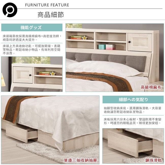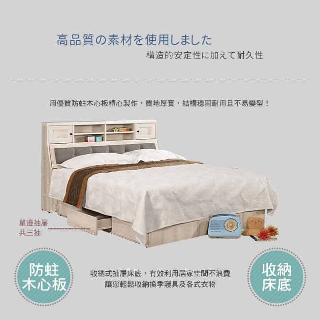 Boden-莉蒂6尺雙人加大床組(床頭箱+三抽收納床底)(不含床墊)