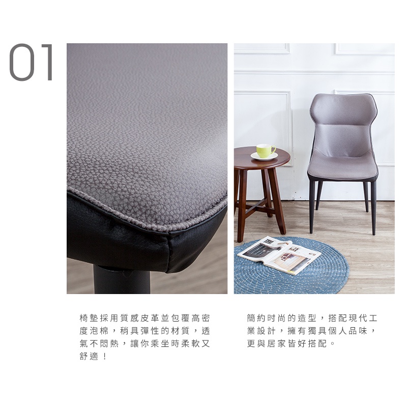 Boden-艾斯特工業風雙色皮革餐椅/單椅(四入組合)