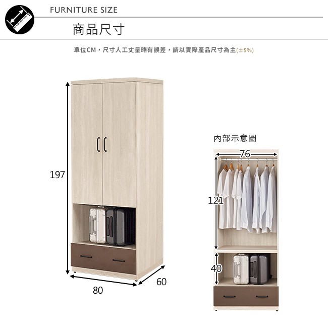 Boden-比恩2.7尺開放式衣櫃(二門+一抽)
