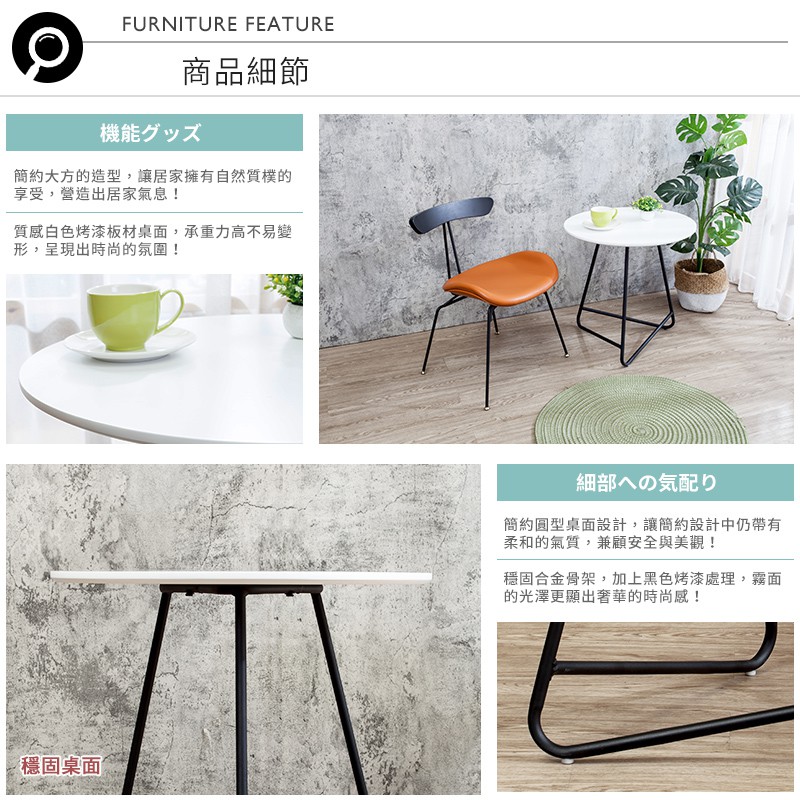 Boden-奧瑪2尺工業風白色圓型小茶几/邊几/邊桌