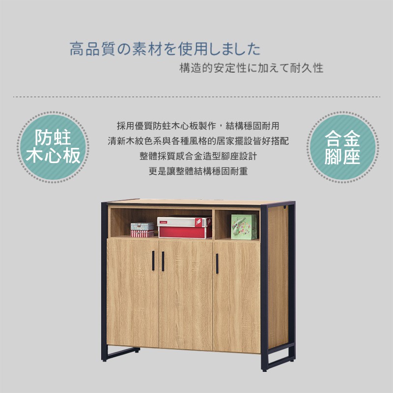 Boden-艾南3.9尺工業風三門鞋櫃(梧桐色)