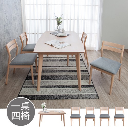 Boden-莎爾5尺實木餐桌椅組(一桌四椅)