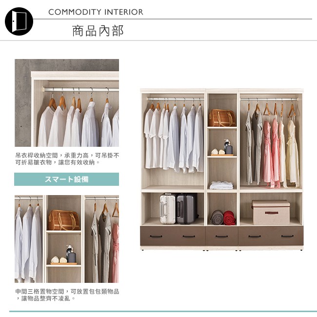 Boden-比恩7.7尺多功能開放式衣櫃組合(雙吊桿)