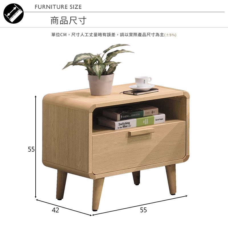 Boden-達芙1.8尺北歐風床頭櫃/一抽收納櫃/置物櫃