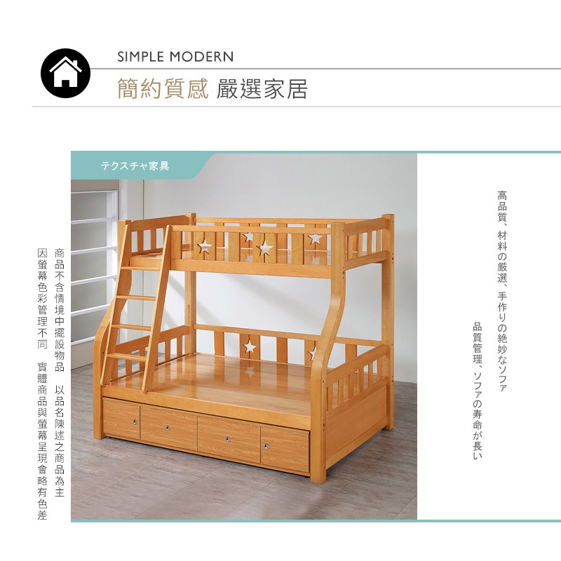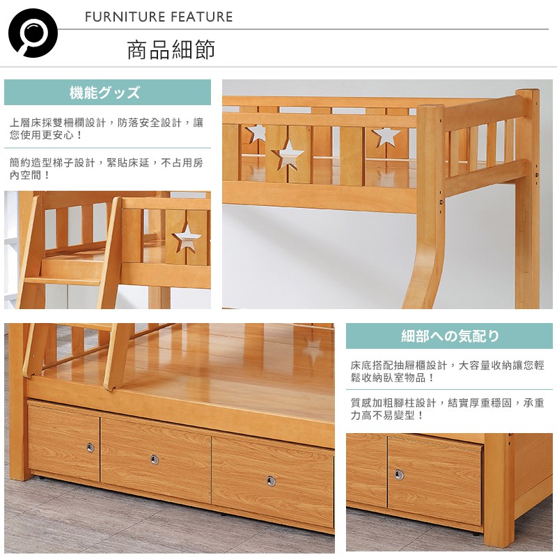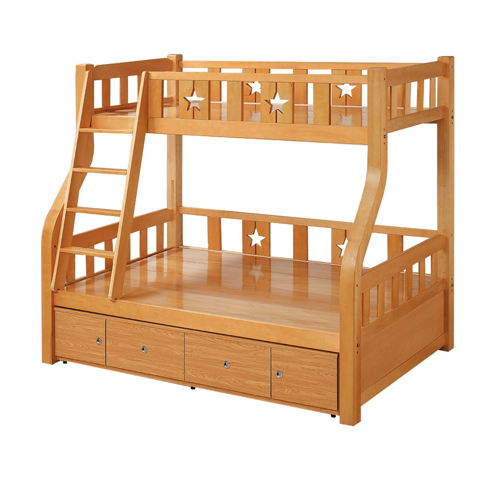 Boden-普利實木功能型雙層床架(4尺加大單人+3尺單人)(附抽屜櫃)