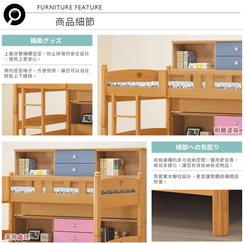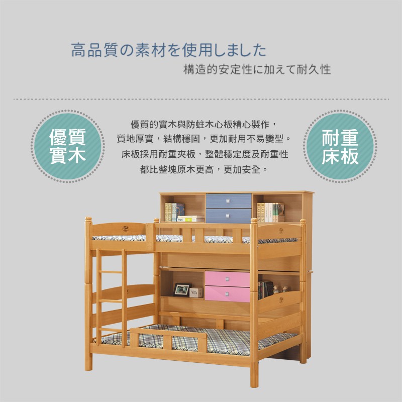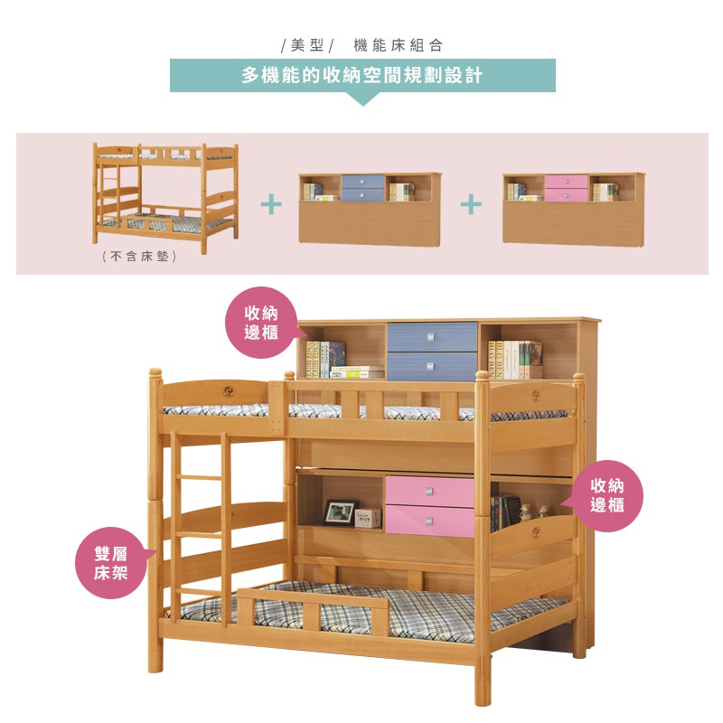 Boden-希達3.5尺實木雙層床架(含收納邊櫃)