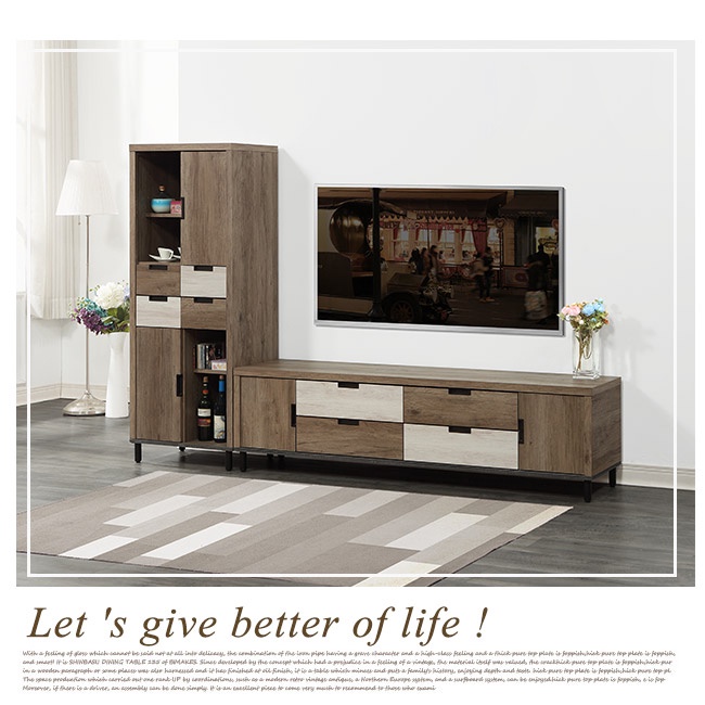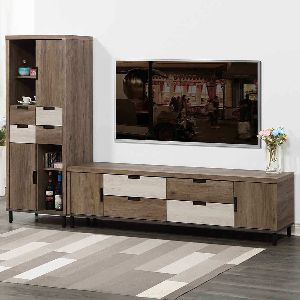 Boden-拜爾8尺工業風L型電視櫃組合(展示櫃+長櫃)