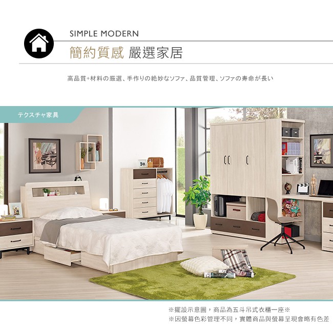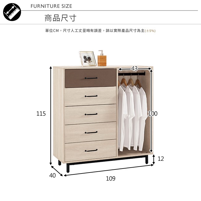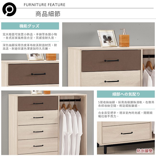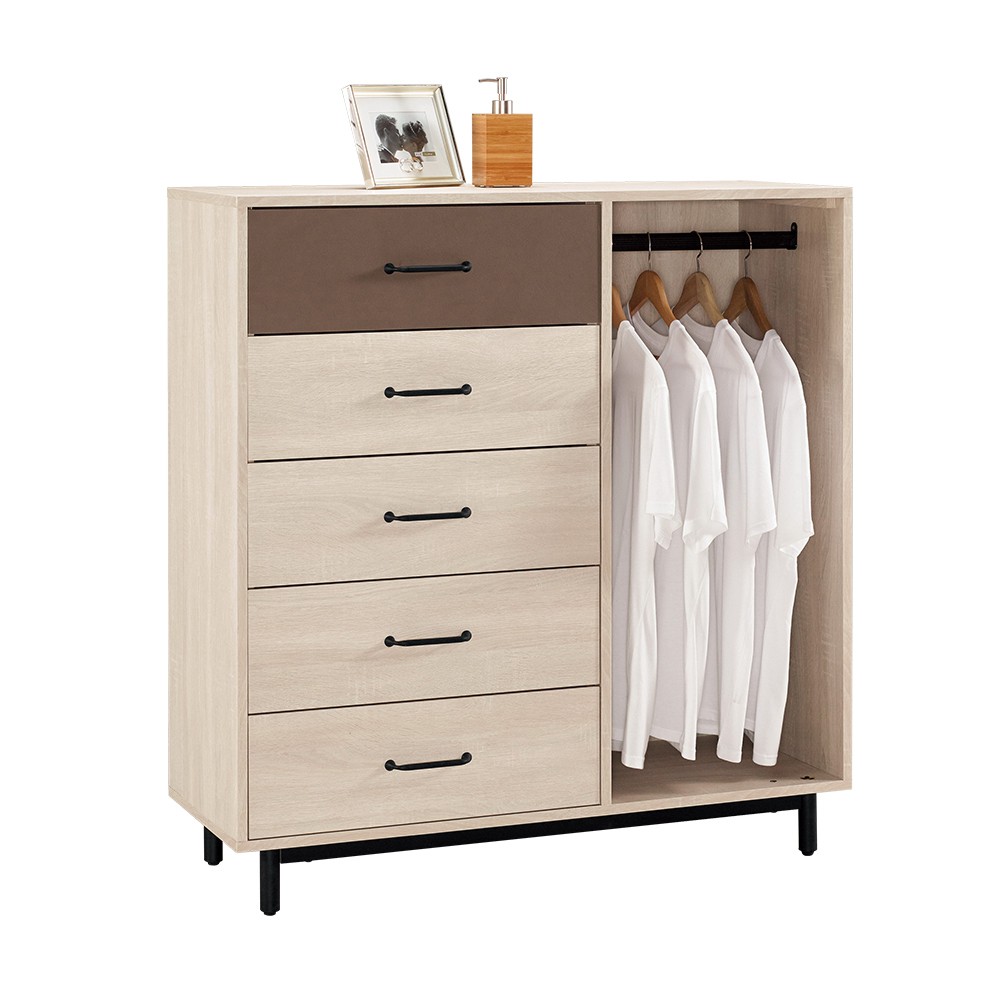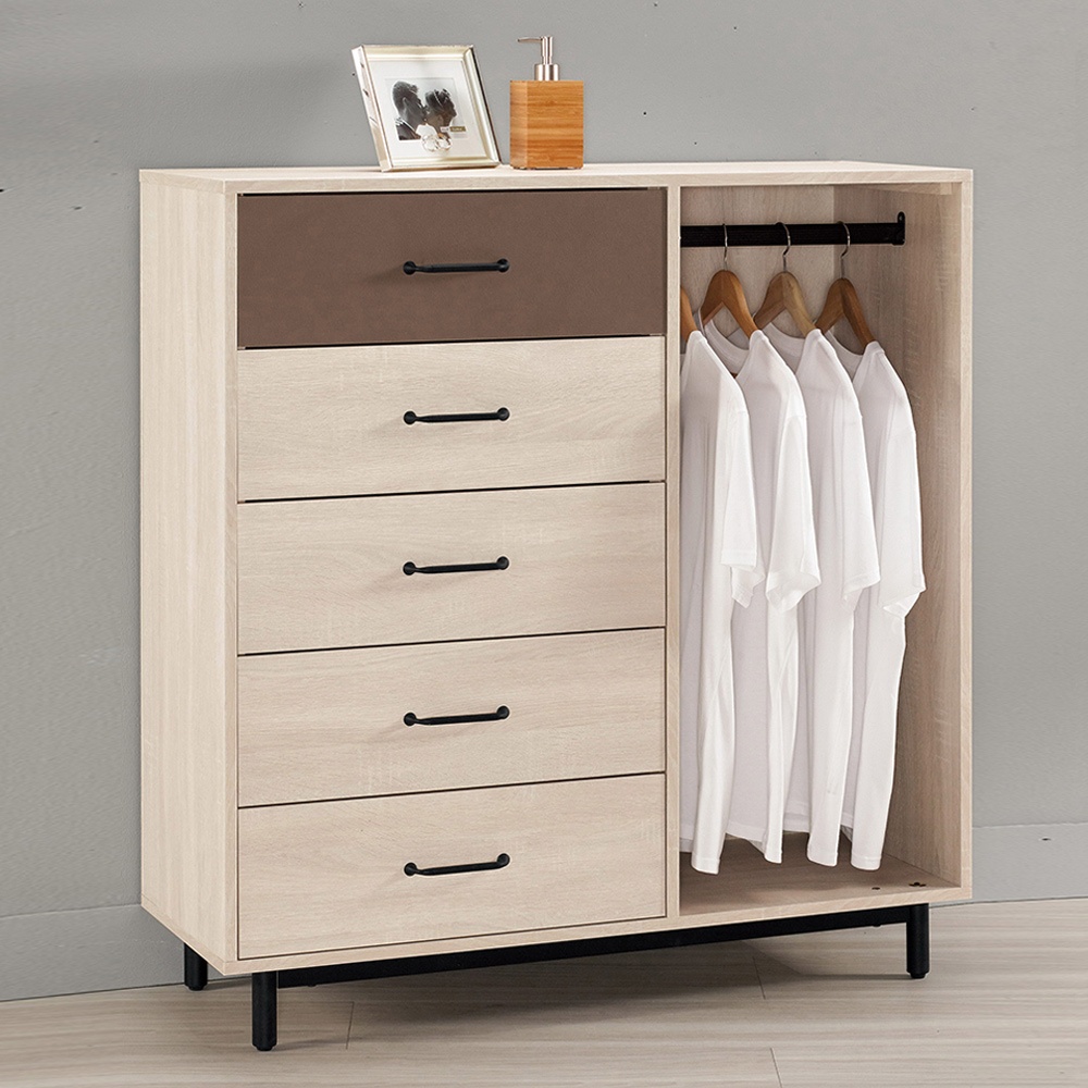 Boden-比恩3.6尺五斗櫃/右開放式五抽收納櫃/置物櫃(單吊桿)