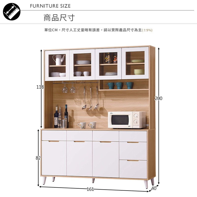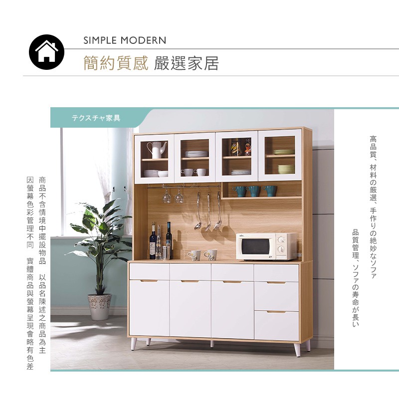 Boden-伊甸5.4尺北歐風收納高餐櫃/碗盤置物櫃/電器櫃(上座+下座)