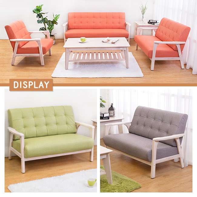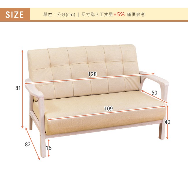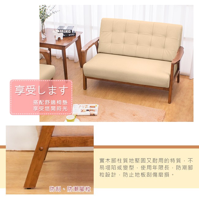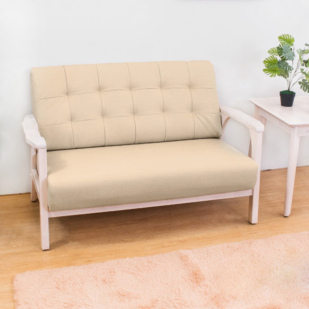 Boden-森克實木貓抓皮沙發雙人椅/二人座(洗白色)(四色可選)