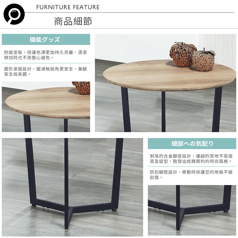 Boden-巴登2尺工業風圓形小茶几/邊桌/邊几