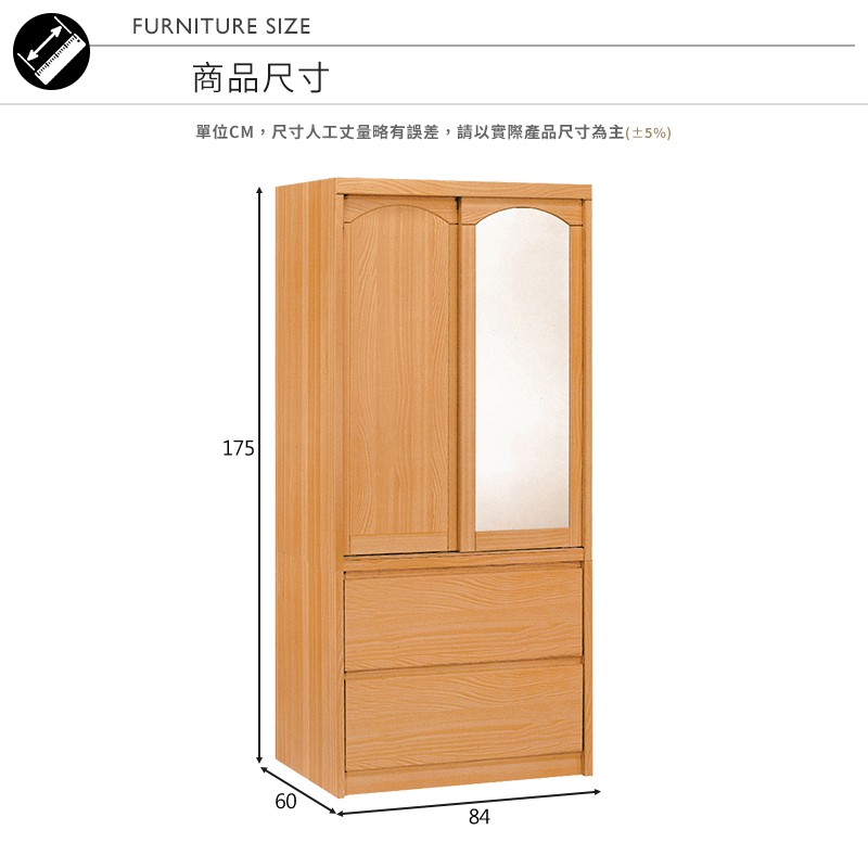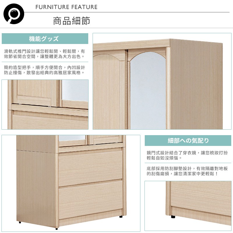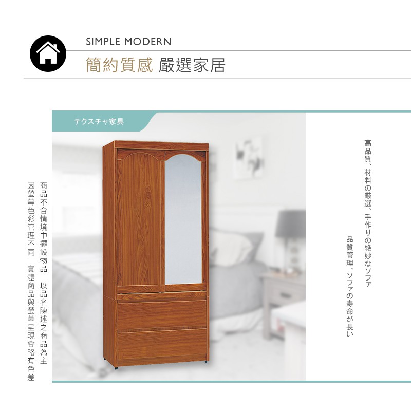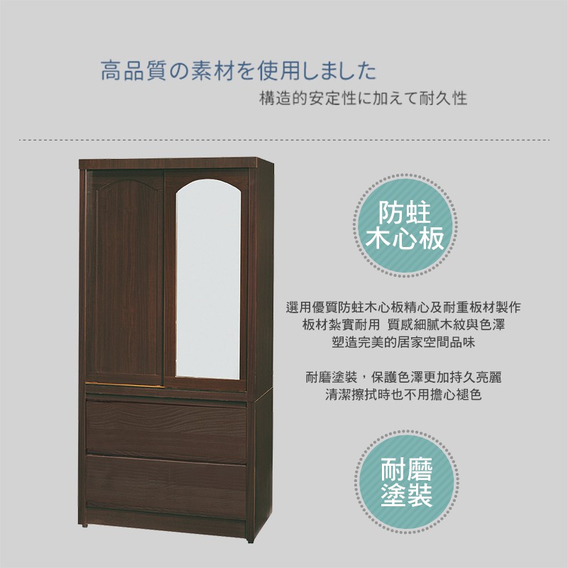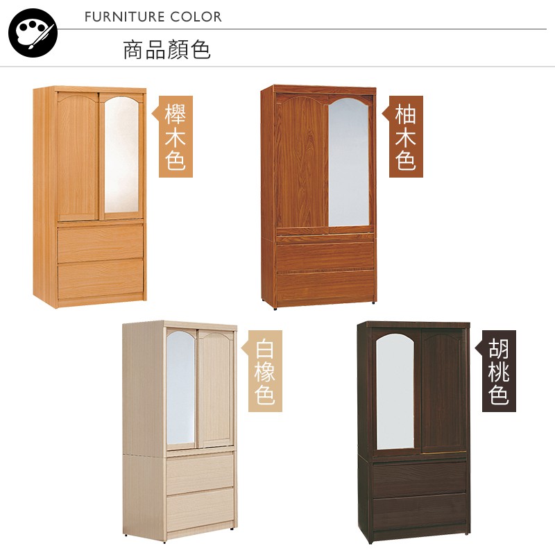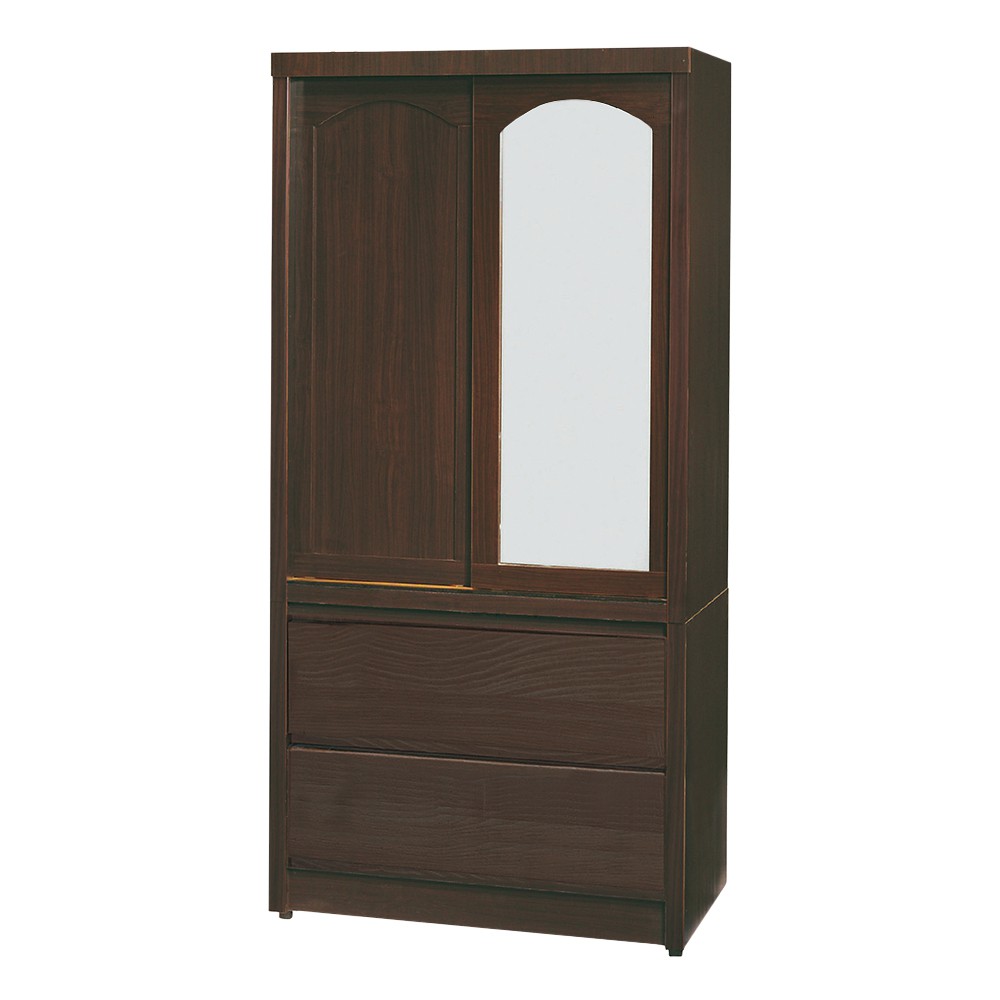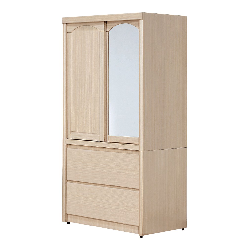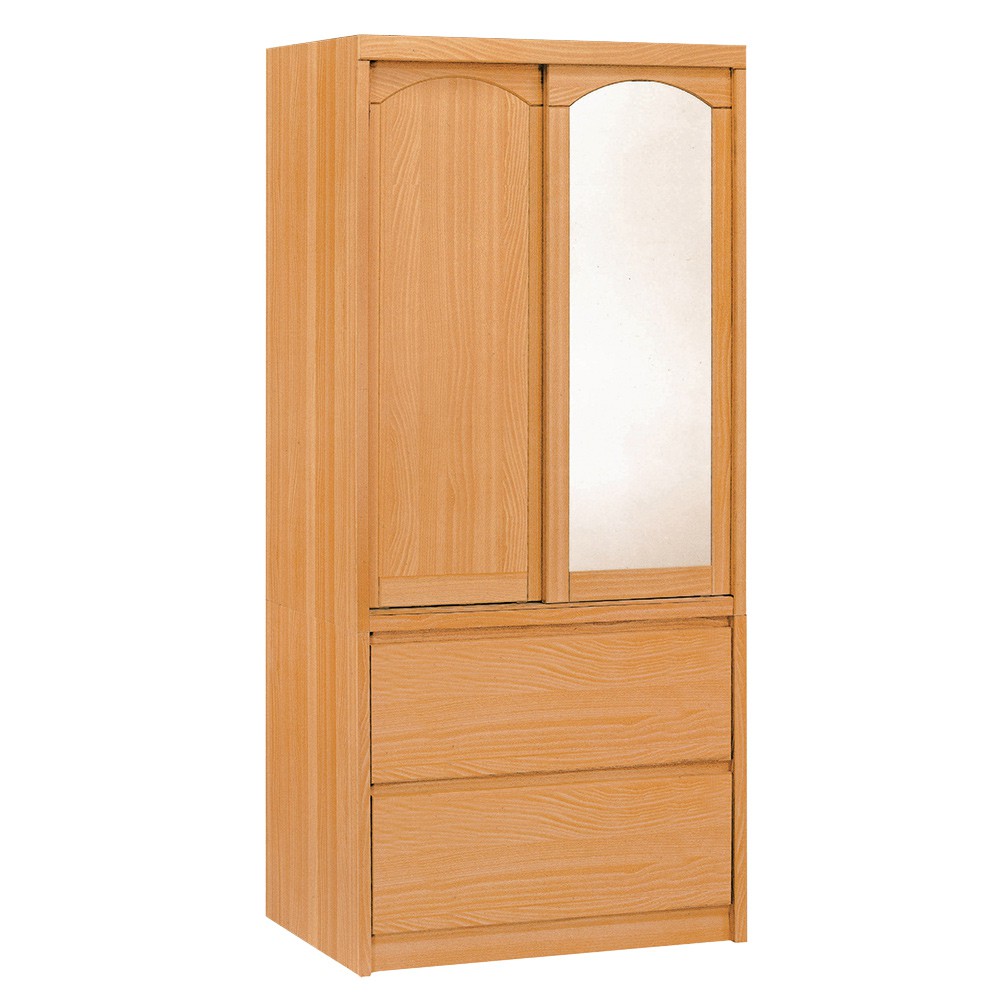 Boden-普恩2.8尺推門/拉門二抽衣櫃(鏡門)(四色可選)