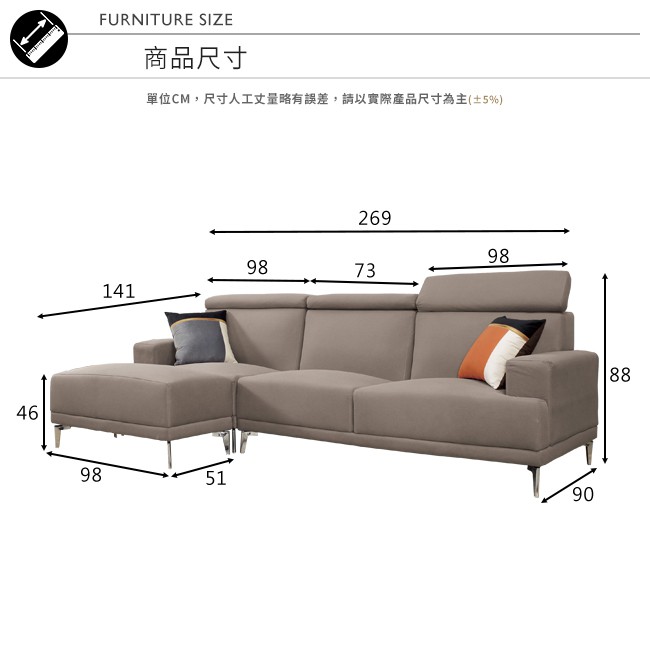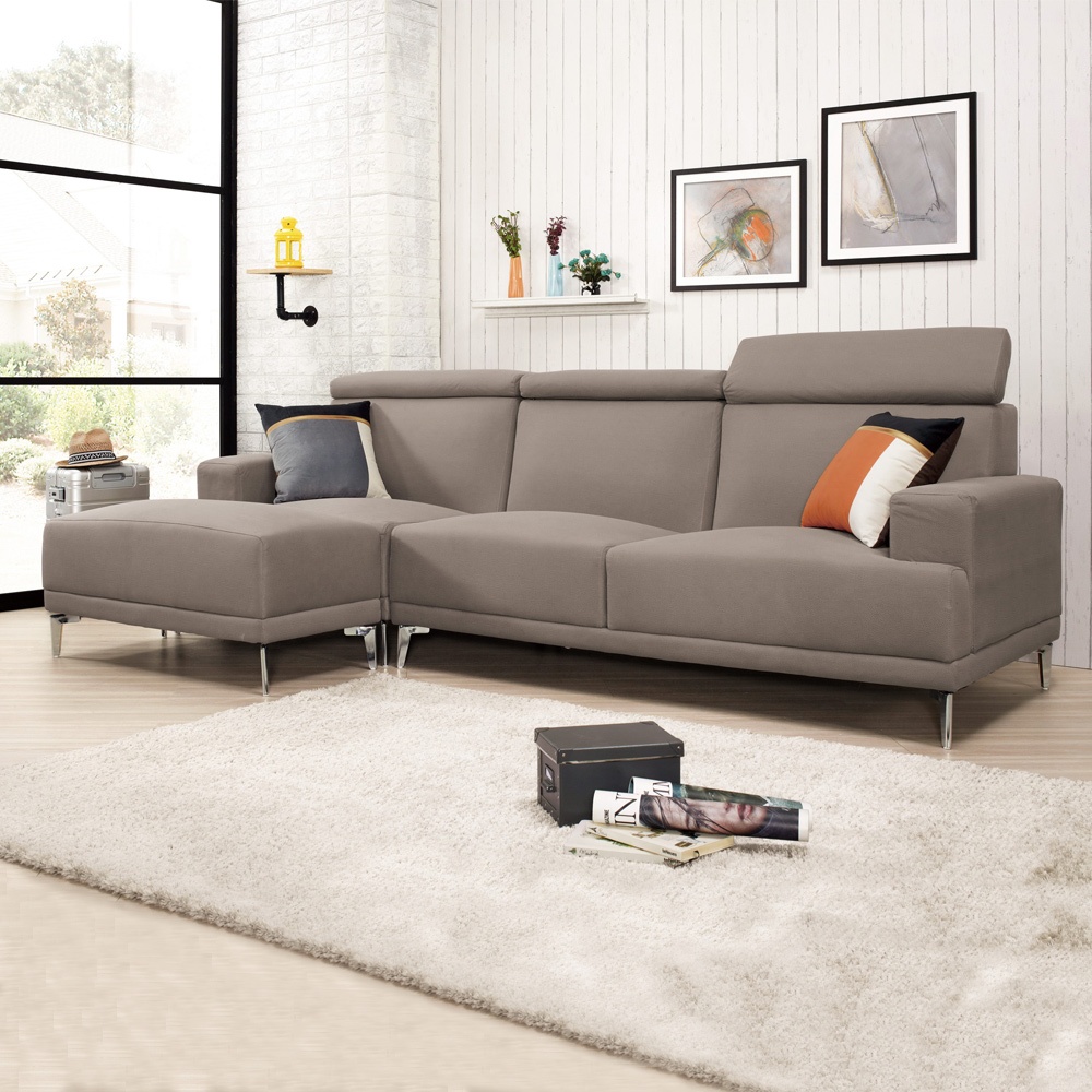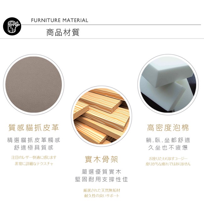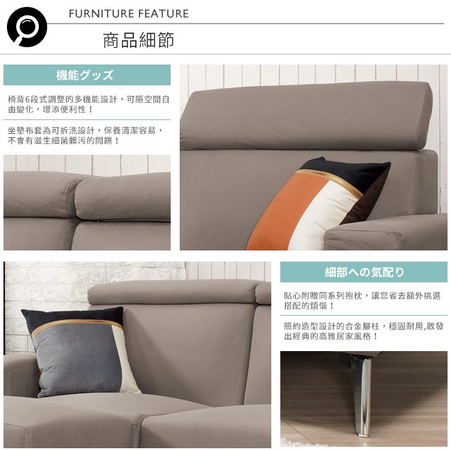 Boden-蒙斯L型機能貓抓皮沙發椅(三人座+腳椅)(贈抱枕)