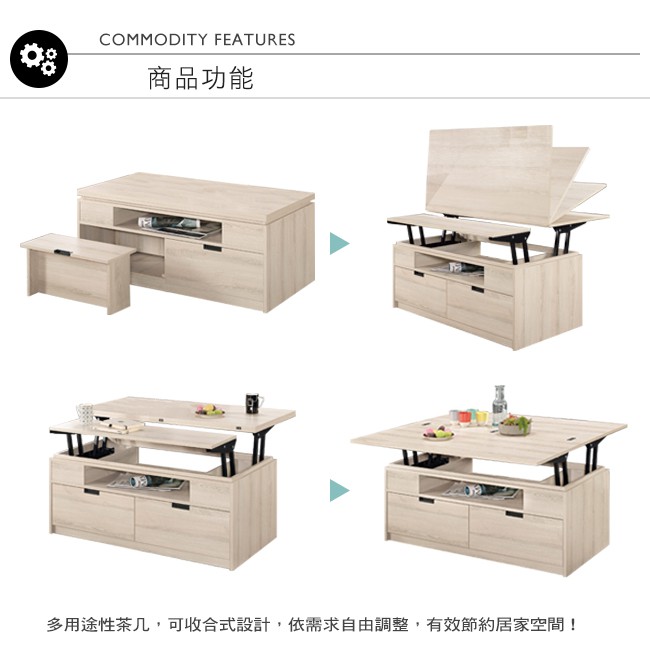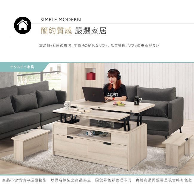 Boden-達克4尺多功能升降大茶几/餐桌(附椅凳二入)