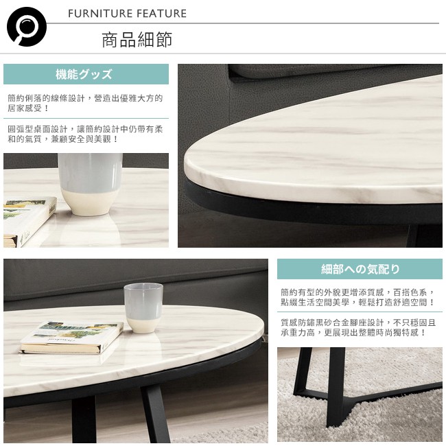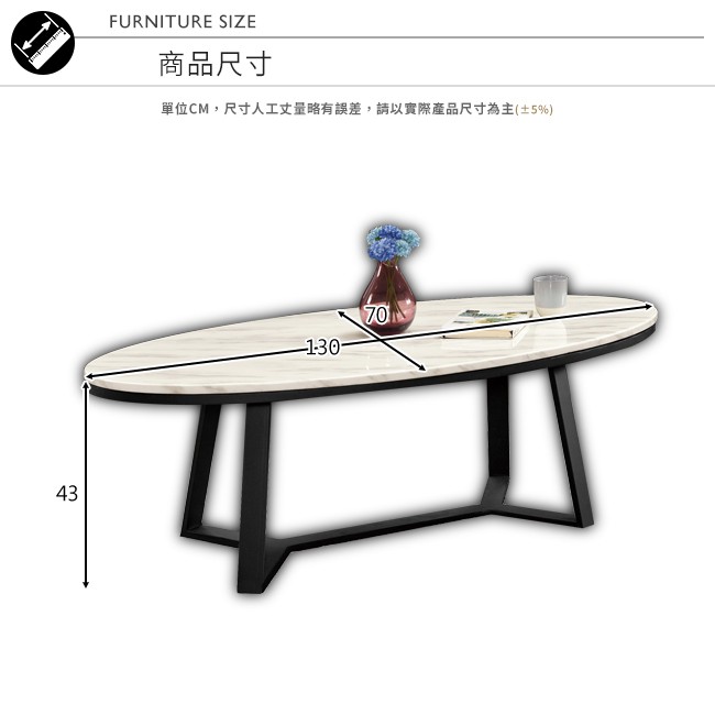 Boden-伊利4.3尺工業風橢圓型石面大茶几