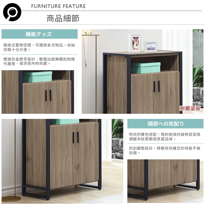 Boden-艾南2.8尺工業風二門鞋櫃(灰橡色)