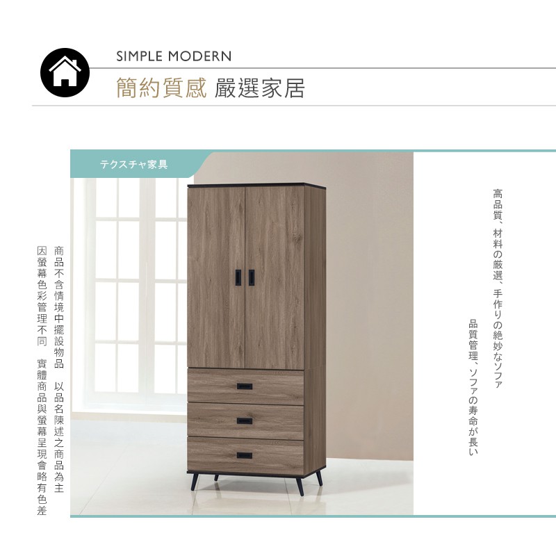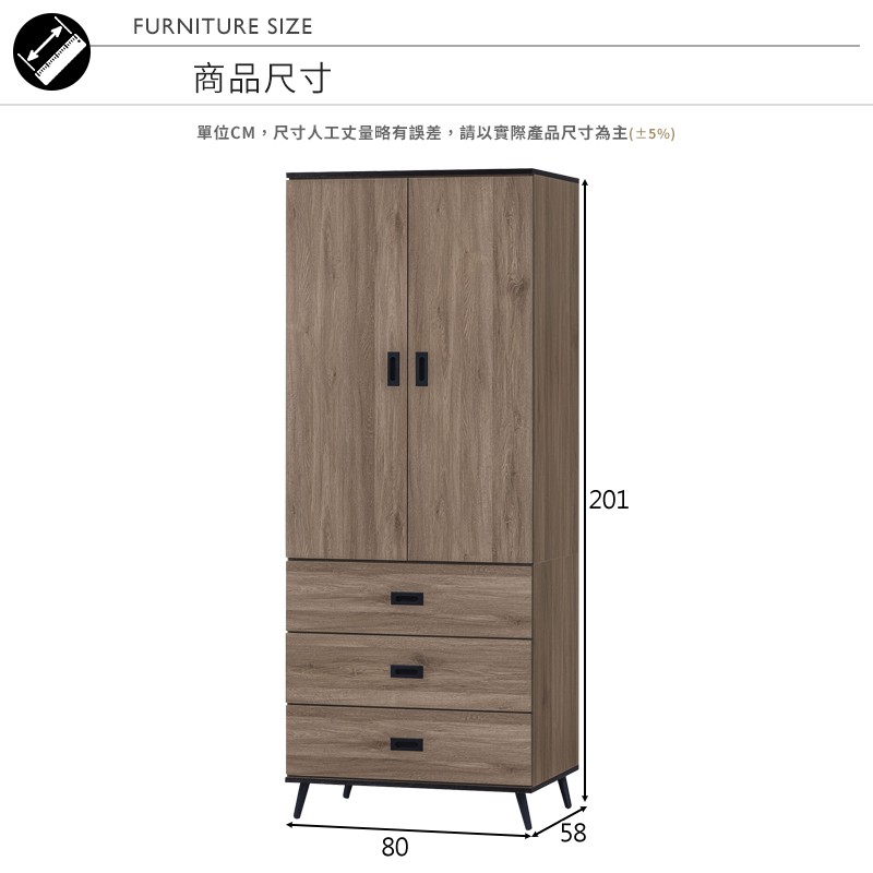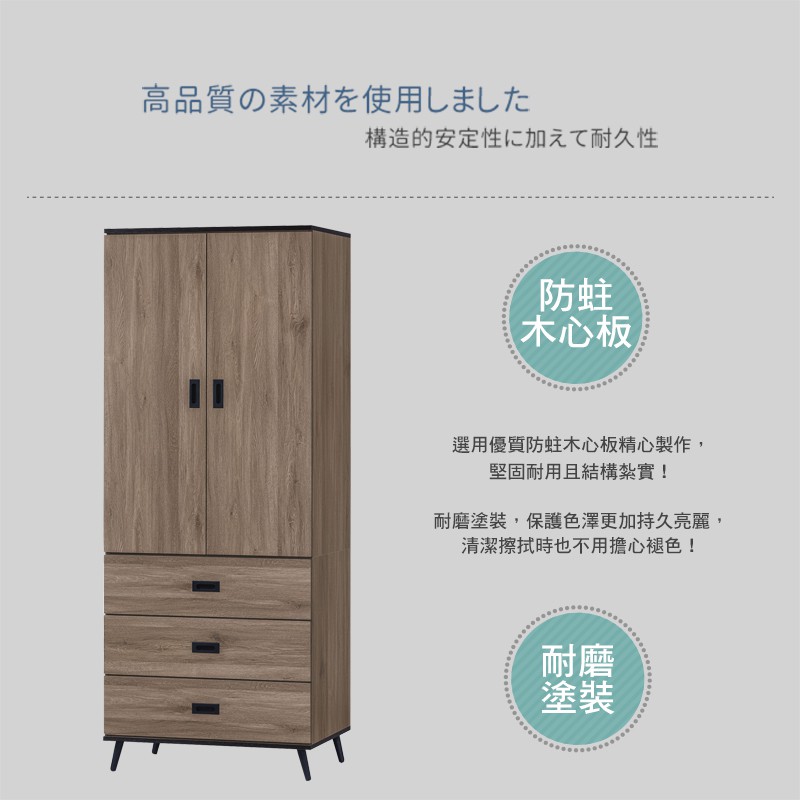 Boden-溫森2.7尺工業風二門三抽衣櫃