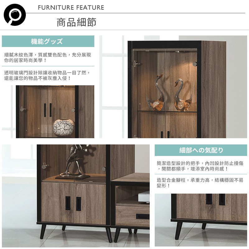 Boden-溫森2尺工業風四門高展示櫃/置物收納櫃(玻璃門)