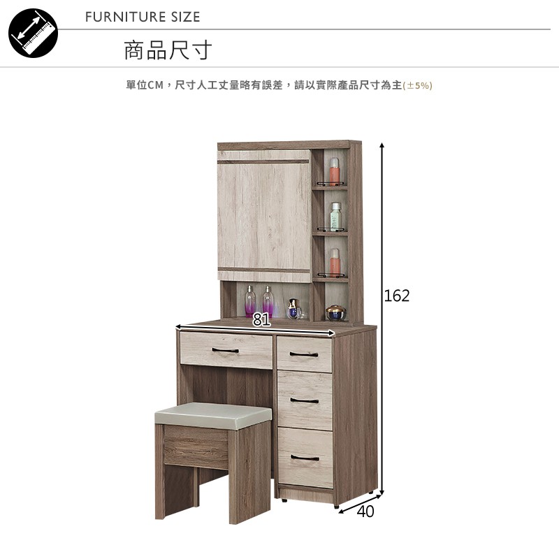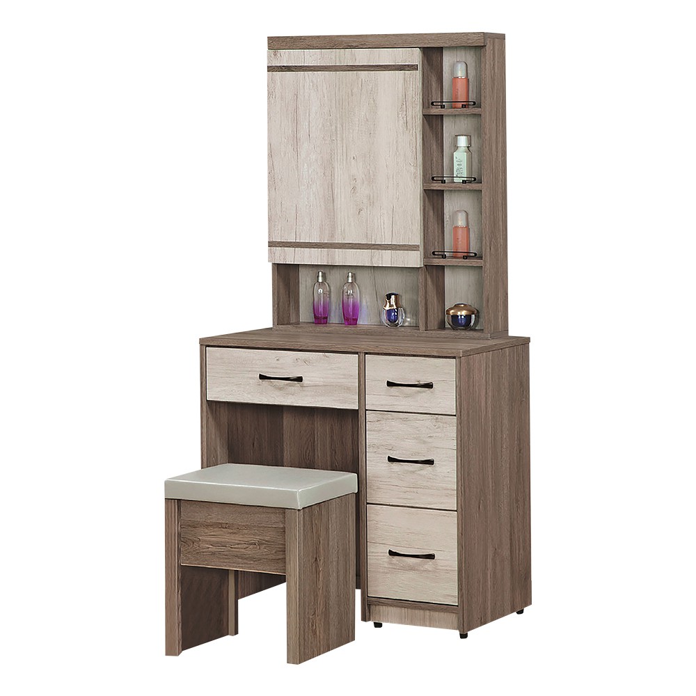 Boden-奧爾2.7尺隱藏式鏡面5格化妝桌/鏡台/梳妝台(贈化妝椅)