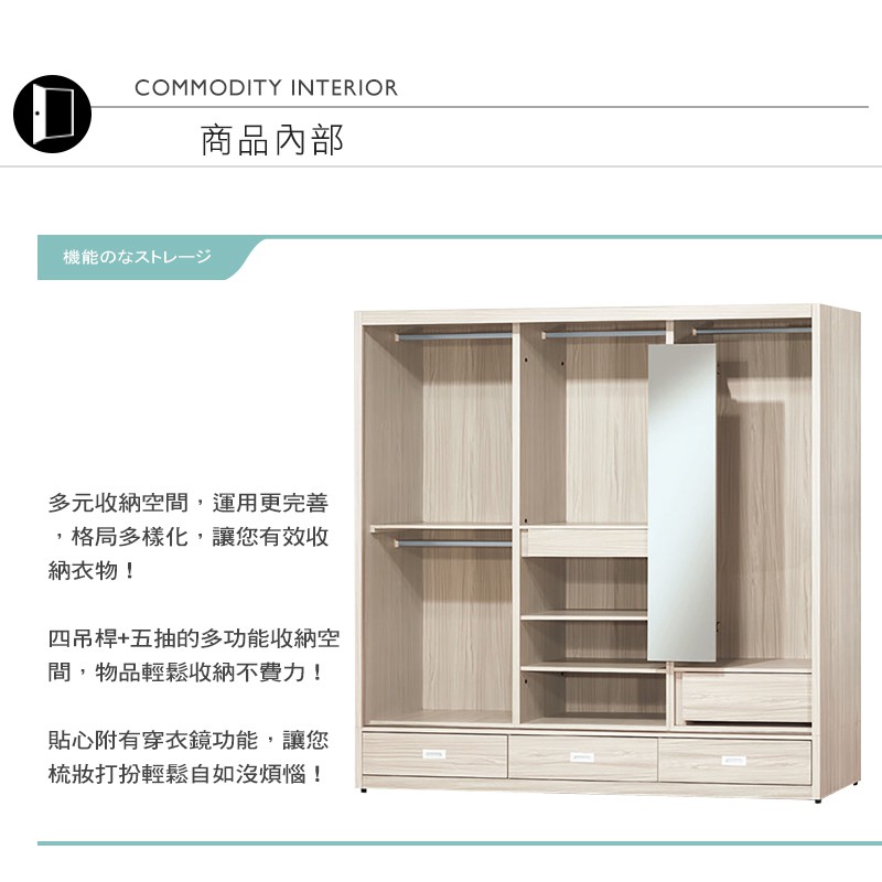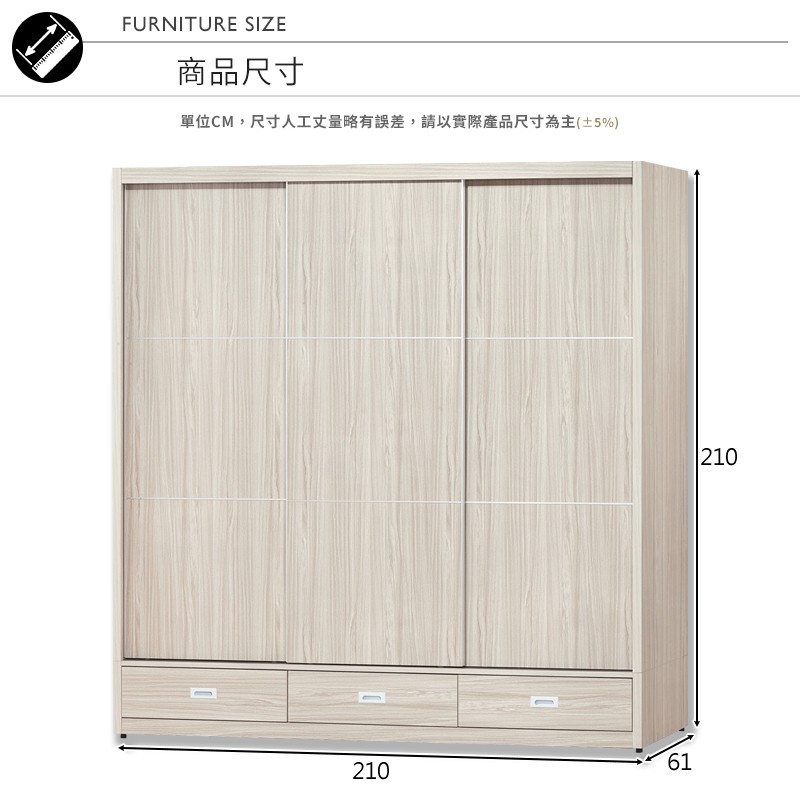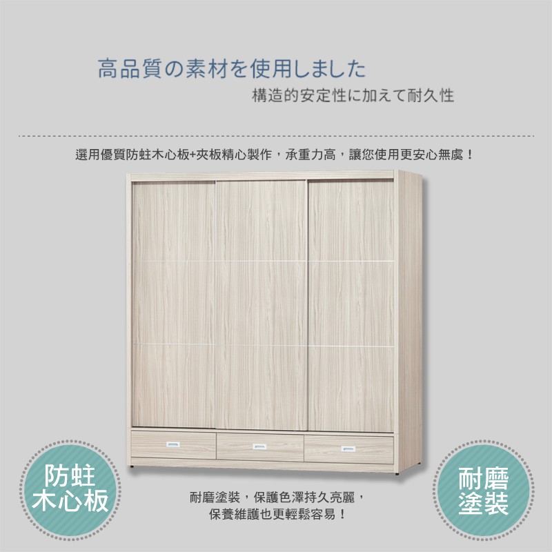 Boden-貝尼7尺推/拉門三抽衣櫃