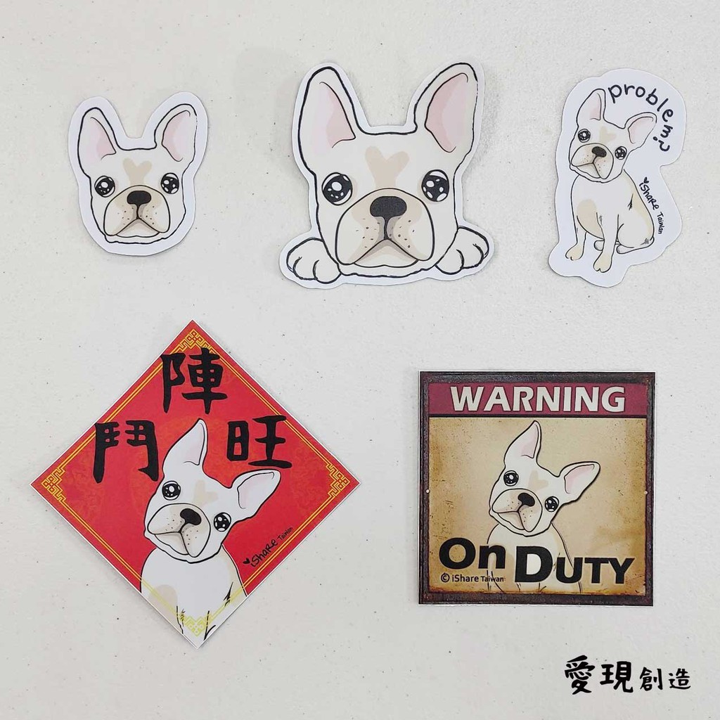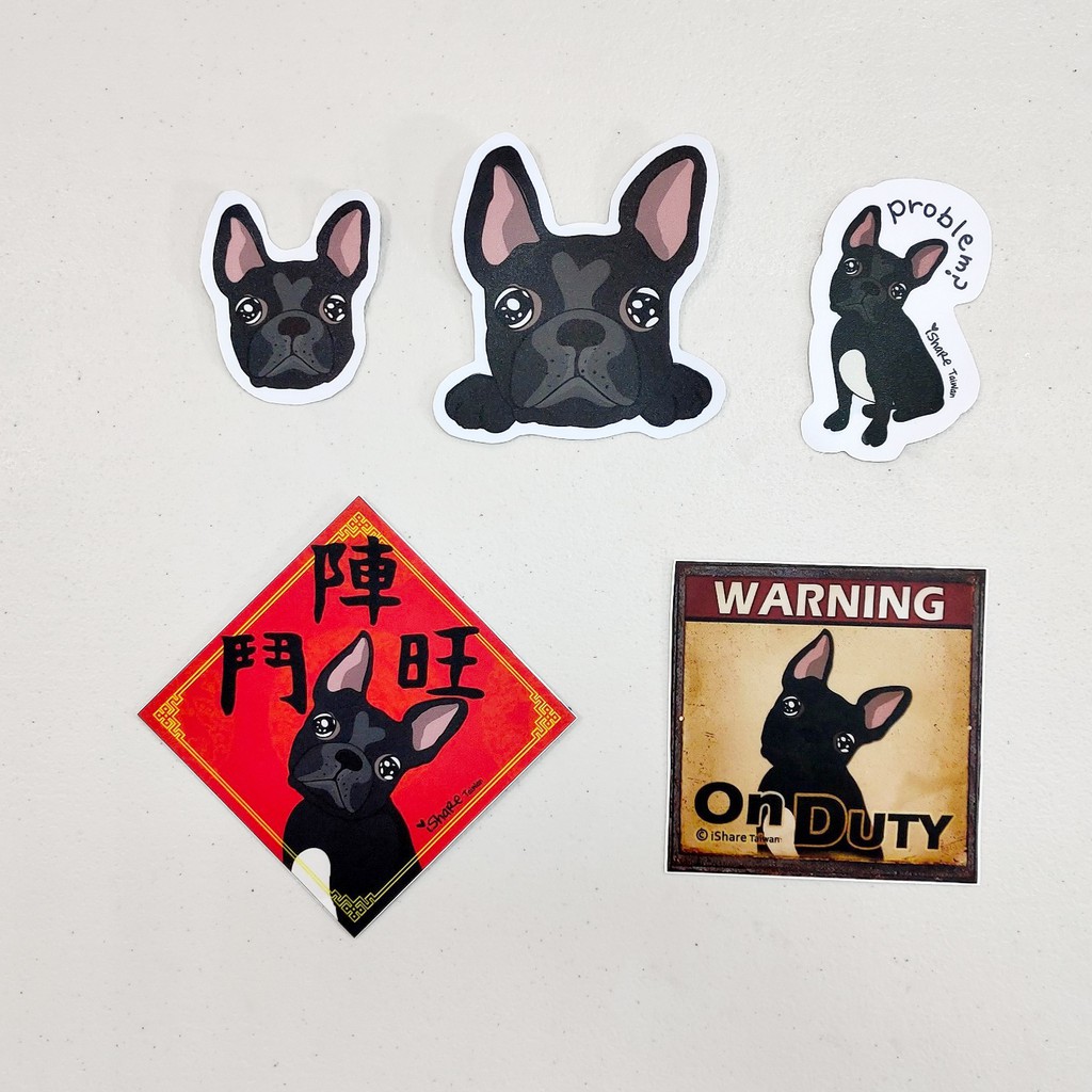 iShare愛現|法鬥 3毛色 寵物防水貼紙|行李箱 滑板 貼紙 春聯 車貼
