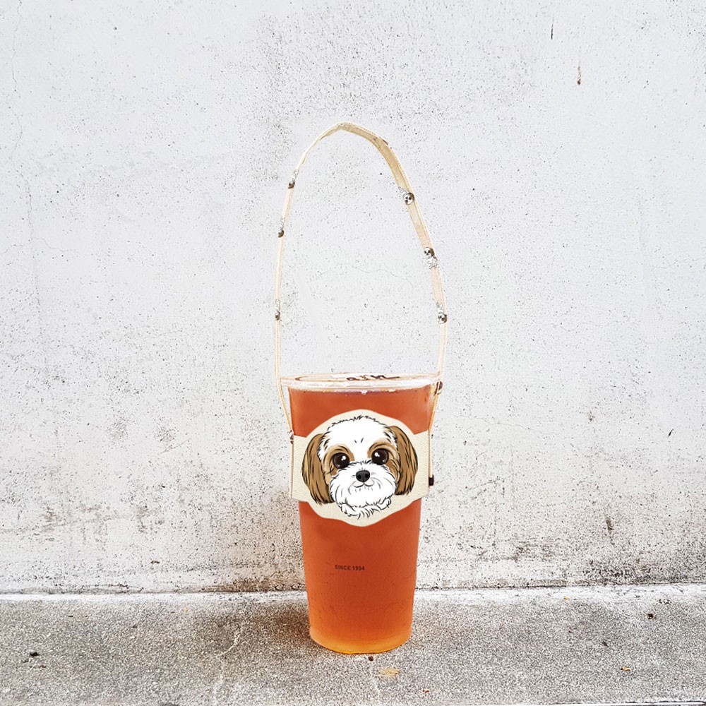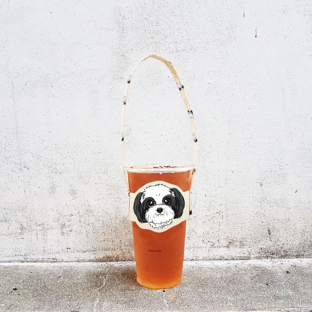 iShare愛現|西施 2毛色 寵物造型隨行飲料杯套提袋 飲料杯袋