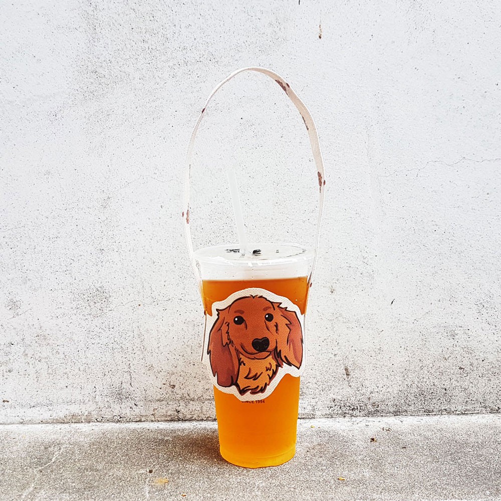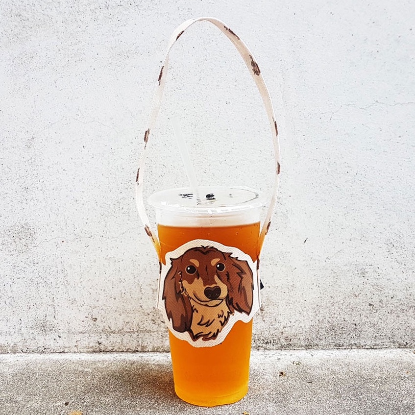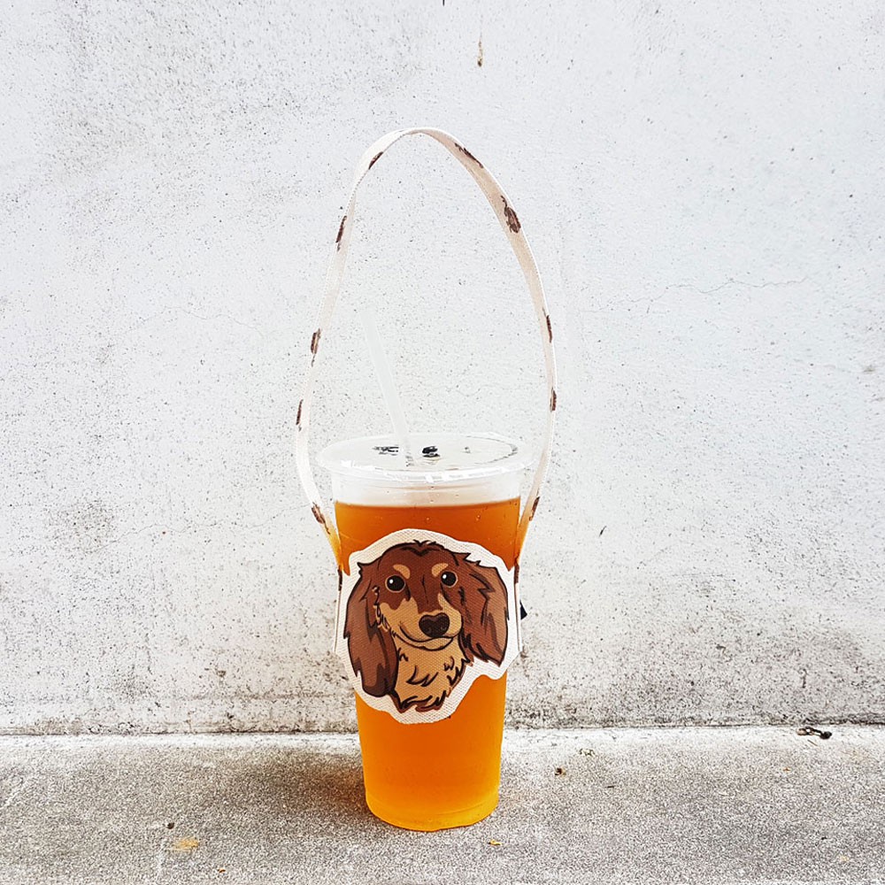 iShare愛現|臘腸 4毛色 寵物造型隨行飲料杯套提袋 飲料杯袋
