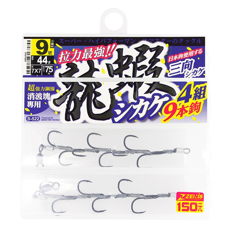 ZENIS 龍蝦鉤仕掛 三向 9本4組 龍蝦鉤 鋼線 小磯 日本鉤 防波堤 消波塊