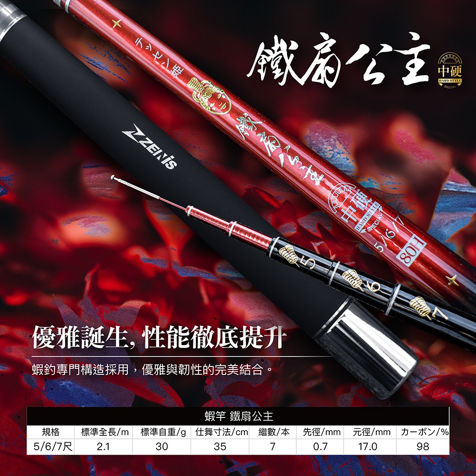 ZENIS 蝦竿 鐵扇公主 80H 極硬調 蝦釣 釣蝦 直感萬轉 配重後塞