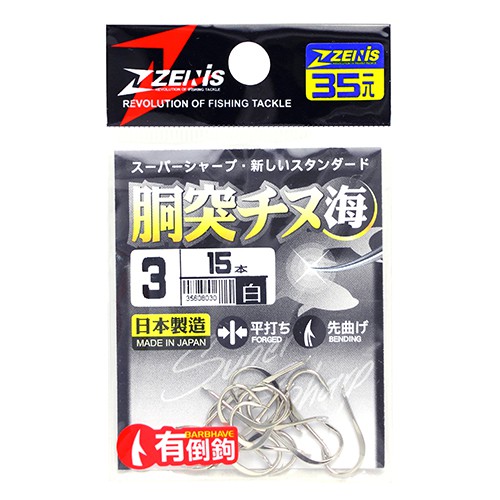 ZENIS 鉤 胴突チヌ 白 釣鉤 魚鉤 千又 日本鉤