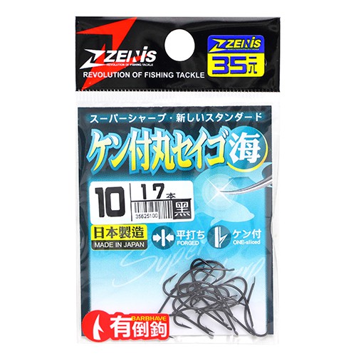 ZENIS 鉤 ケン付丸セイゴ黑 釣鉤 魚鉤 背刺 丸世 丸勢 日本鉤