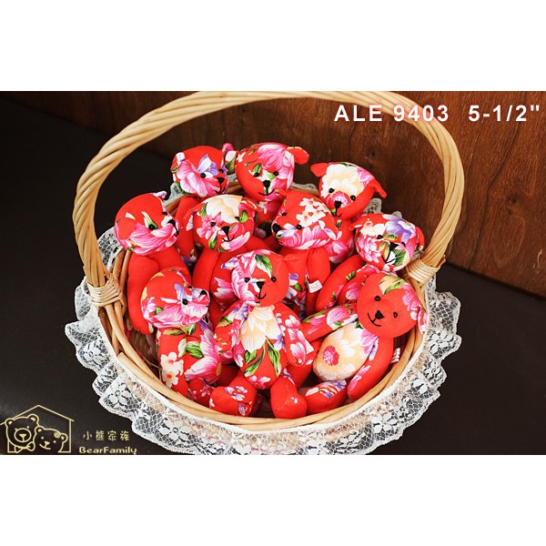 客家大紅花布小熊 婚禮小物 手工製作 台灣文創 小熊家族 絨毛玩偶專賣店