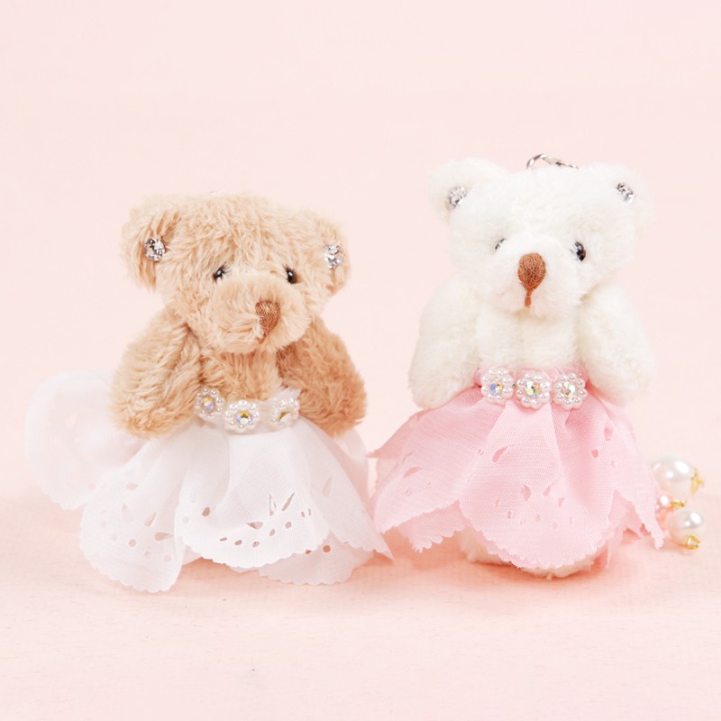 氣質公主迷你小熊雙色一對 手機包包吊飾 婚禮小物 小熊家族 泰迪熊專賣店