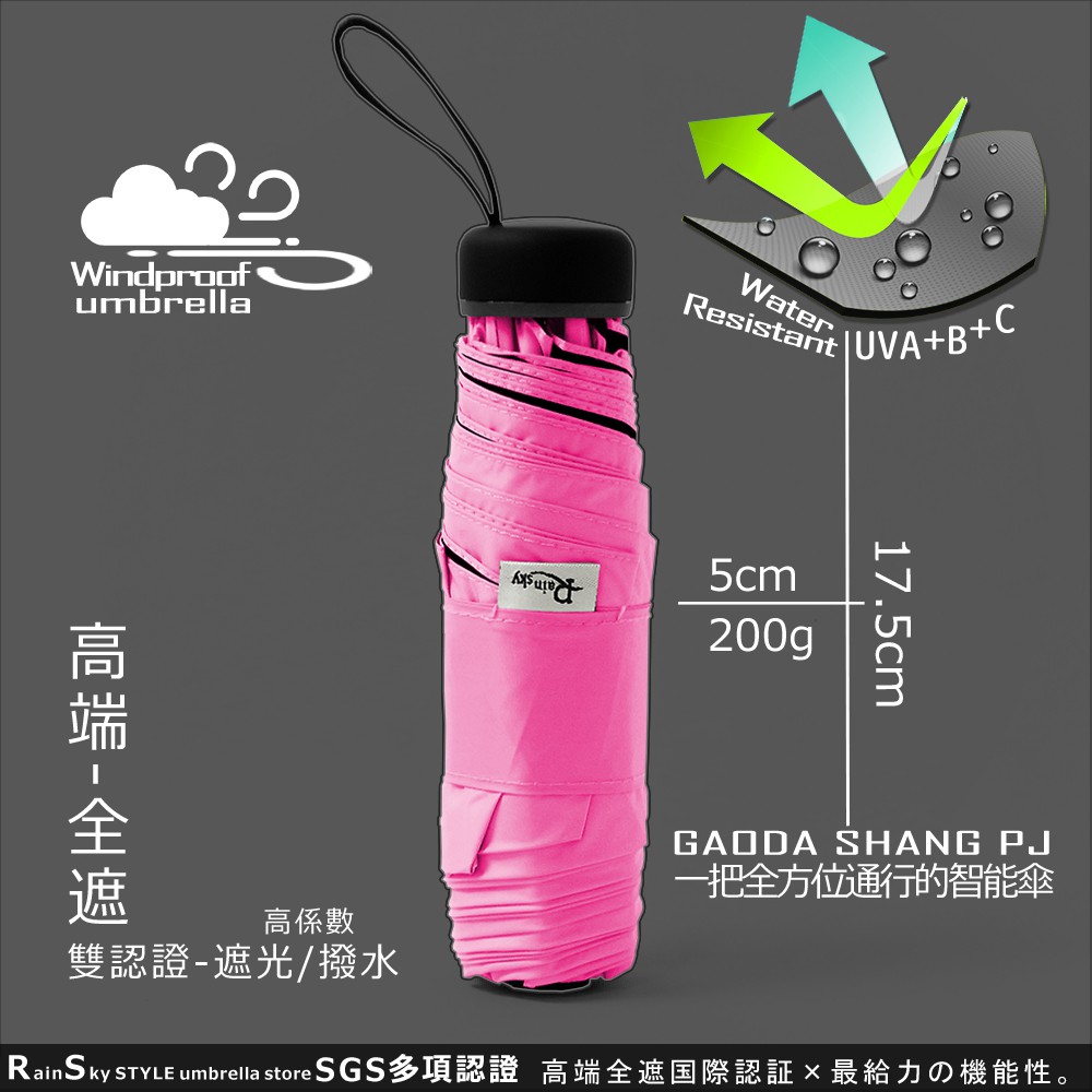 【遮光/撥水】高端-全遮_85cm超迷你傘_(配色握把) / 防風傘防曬傘陽傘洋傘折傘UV傘遮光傘撥水傘