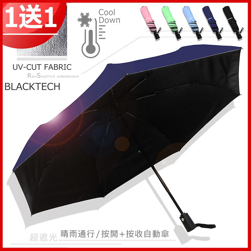 【真品-買一送一】40吋-黑膠自動傘-遮光/遮雨/抗UV傘 雨傘黑膠傘折疊傘防風傘超輕傘防曬傘加大傘遮光傘