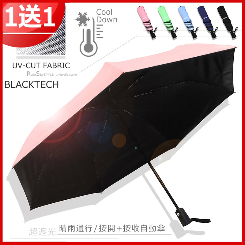 【真品-買一送一】40吋-黑膠自動傘-遮光/遮雨/抗UV傘 雨傘黑膠傘折疊傘防風傘超輕傘防曬傘加大傘遮光傘