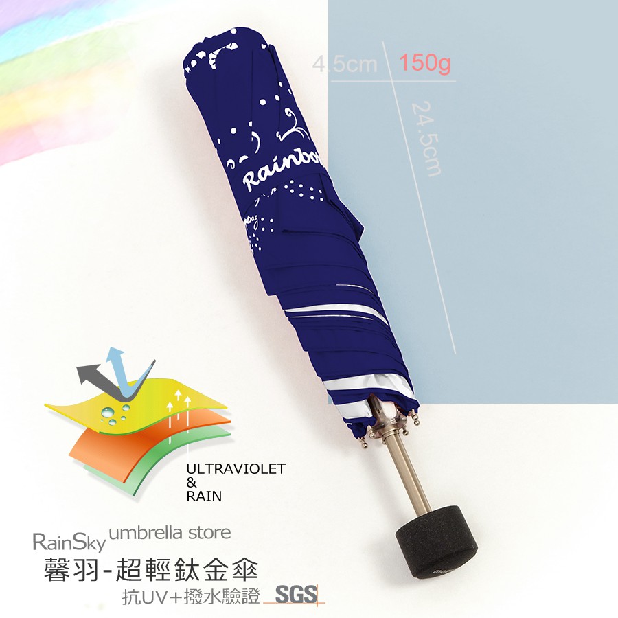 【RainSky】馨羽-96cm輕鈦金晴雨傘 /洋傘遮陽傘陽傘折疊傘抗UV傘非自動傘反向傘黑膠傘
