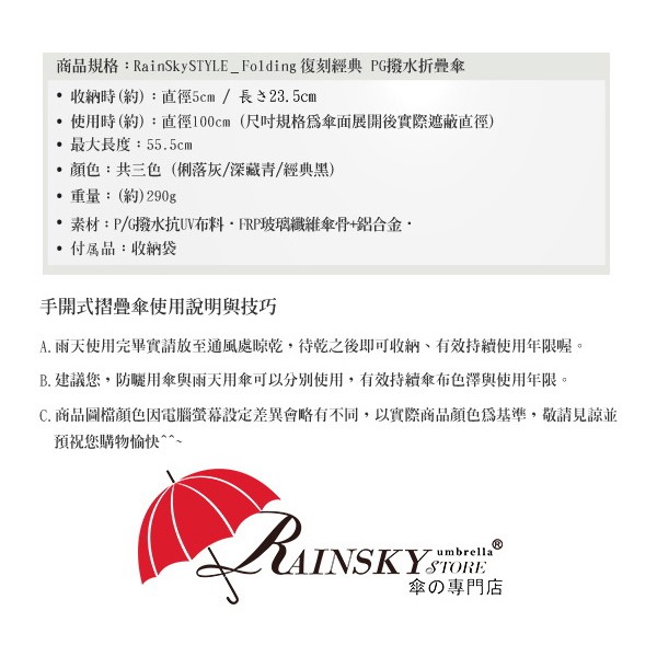 【RainSky】Folding經典復刻晴雨傘【蝦皮團購】 /洋傘遮陽傘陽傘折疊傘抗UV傘非自動傘反向傘黑膠傘