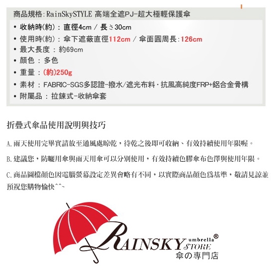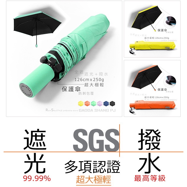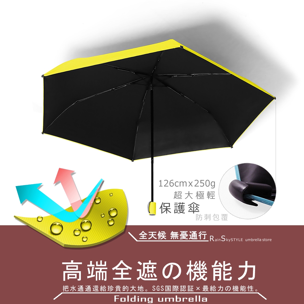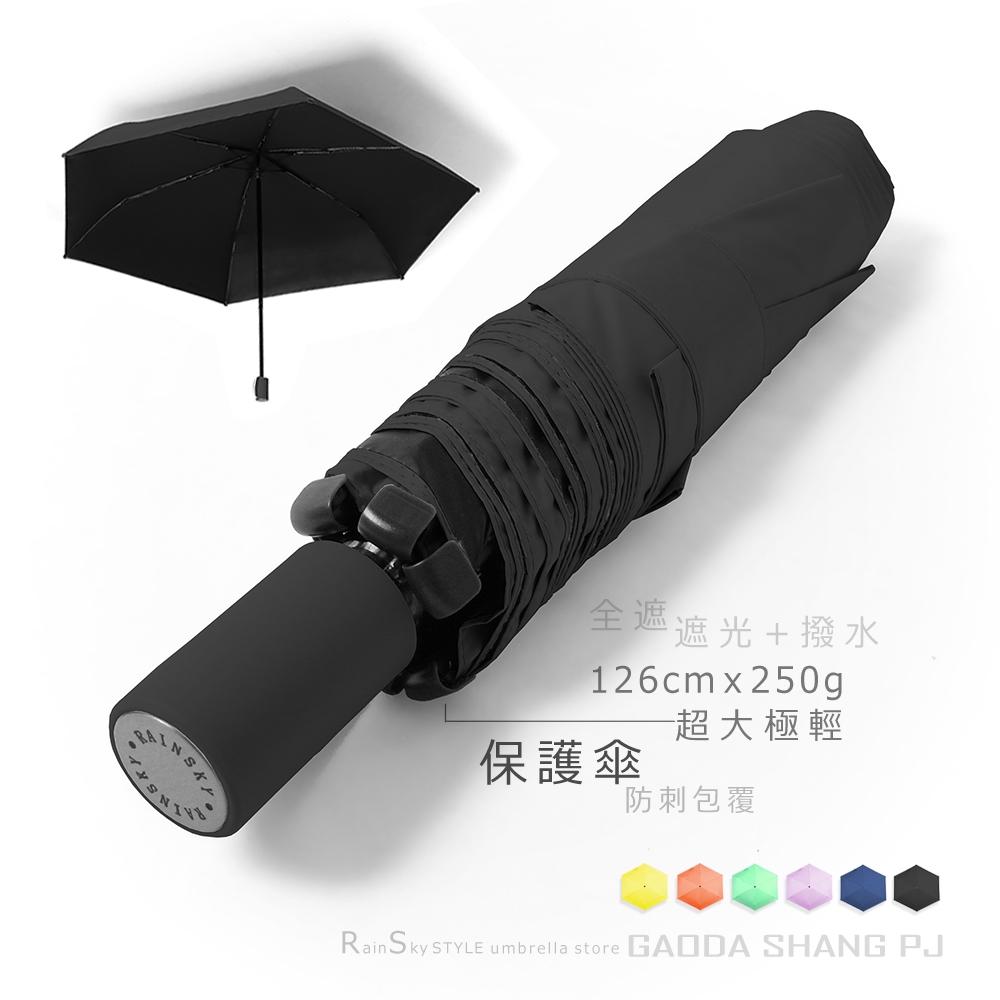 RainSky-極輕超大-126cm保護傘 /遮光+撥水雙效/抗UV傘黑膠傘雨傘洋傘折疊傘陽傘防曬傘非反向傘