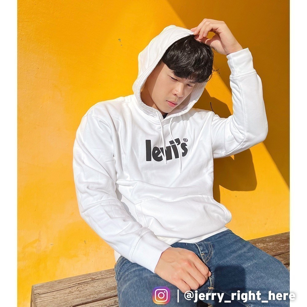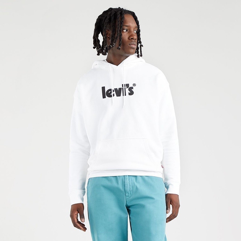 Levis 男款 重磅口袋帽T/質感麂皮復古Logo/寬鬆休閒版型/430GSM厚棉 白 熱賣單品 38479-0078