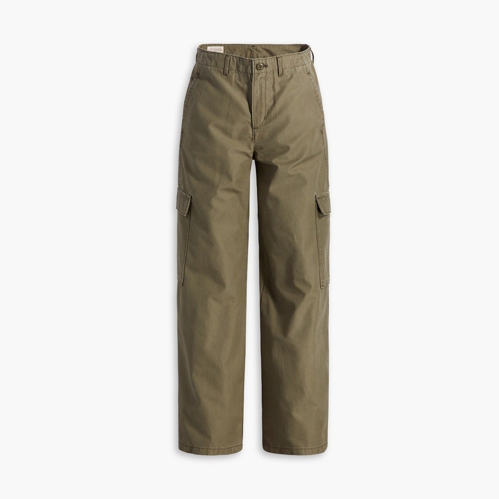 Levis 街頭工裝風中腰寬直筒休閒長褲 橄欖綠 女款 熱賣單品 A6077-0004