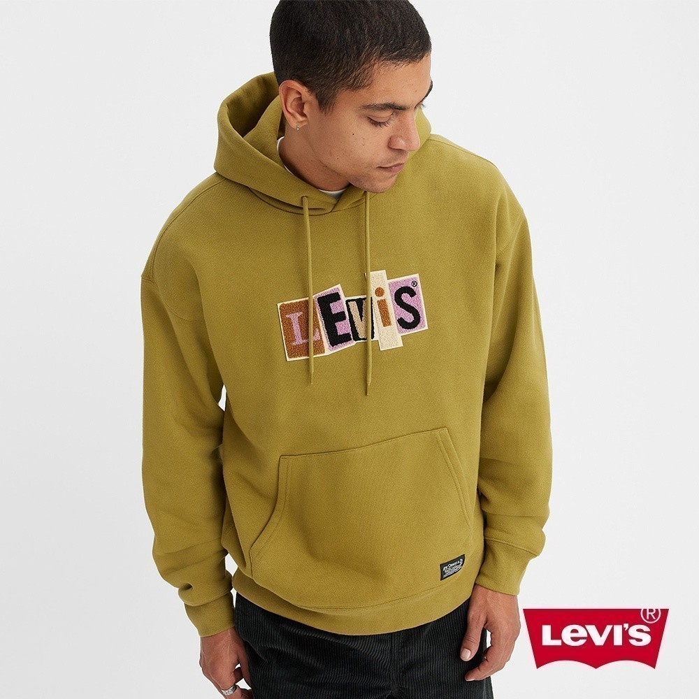 Levis 滑板系列 男款 寬鬆版超重磅口袋帽T / 拼接布章Logo / 蘚苔綠 男 A1008-0006 熱賣單品