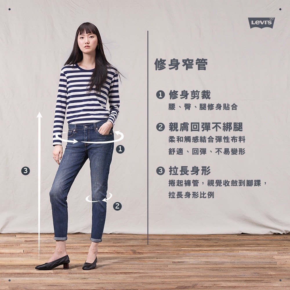 Levis 女款 高腰男友褲/小開叉不收邊褲管/及踝款 彈性布料 熱賣單品 85873-0103