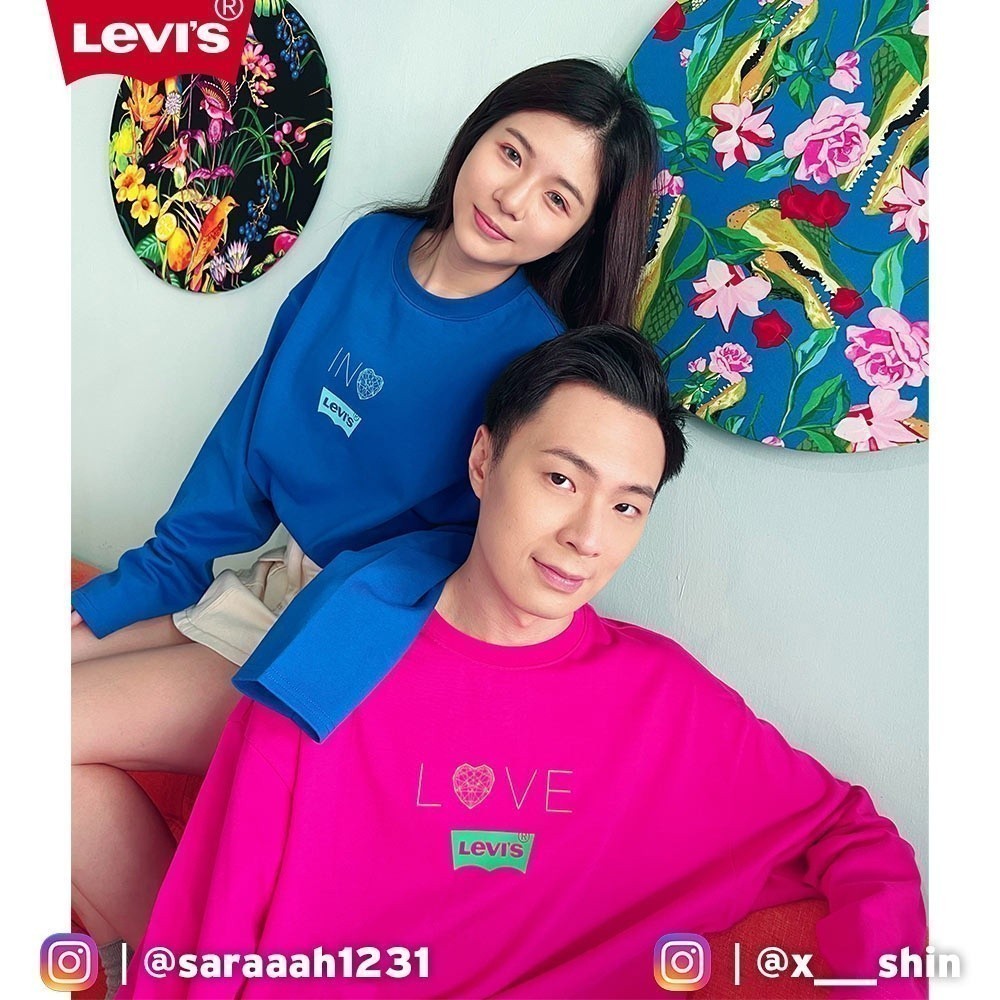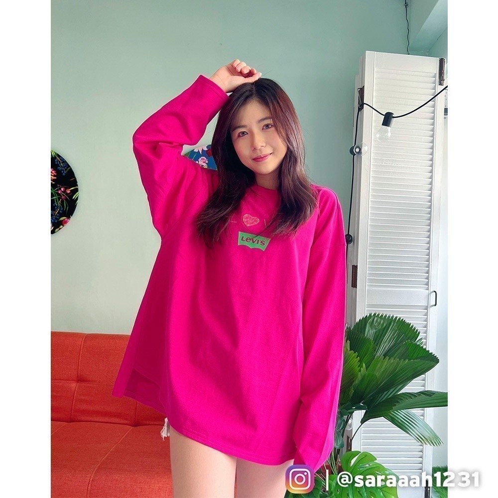 Levis 男女同款 重磅情侶長袖T恤 / 前短後長設計 / 370GSM厚棉 粉 熱賣單品 A5417-0002