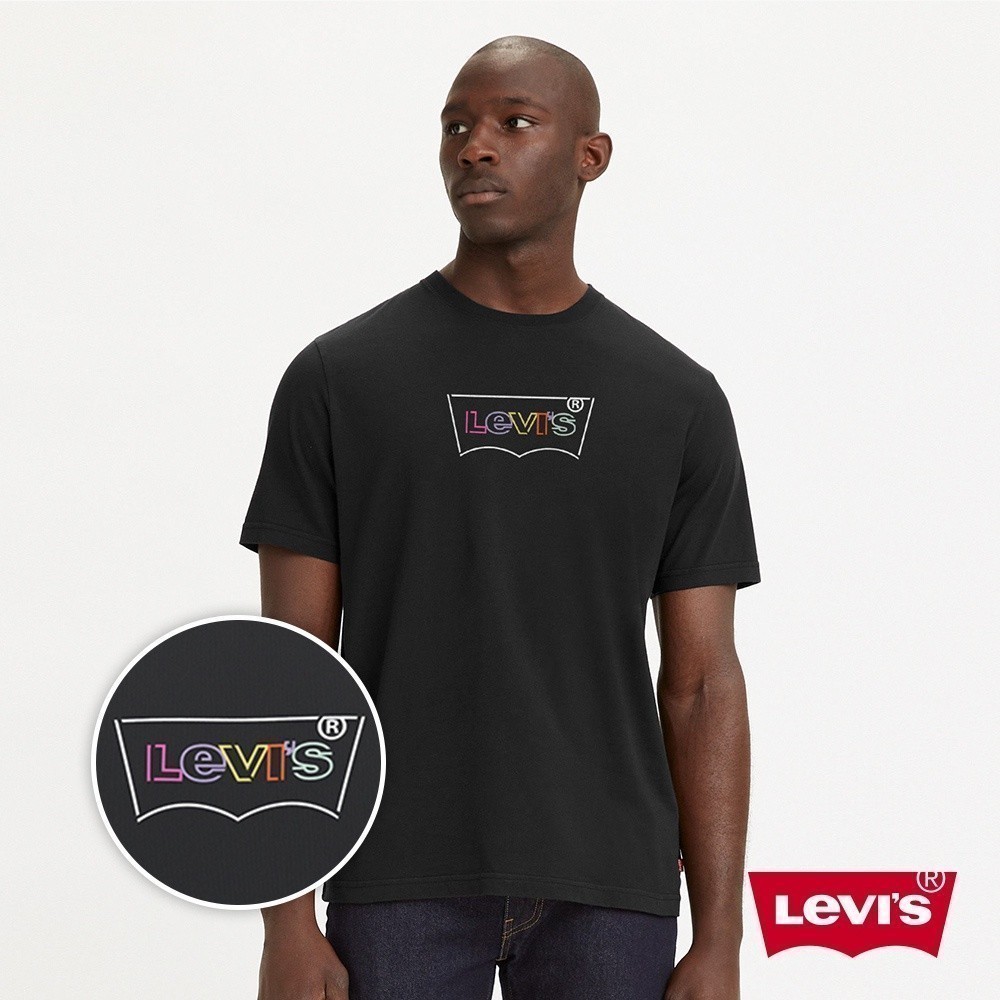 Levis 男款 寬鬆重磅短袖T恤/高密度立體膠印Logo/225GSM厚棉 魚子黑 熱賣單品 16143-1224