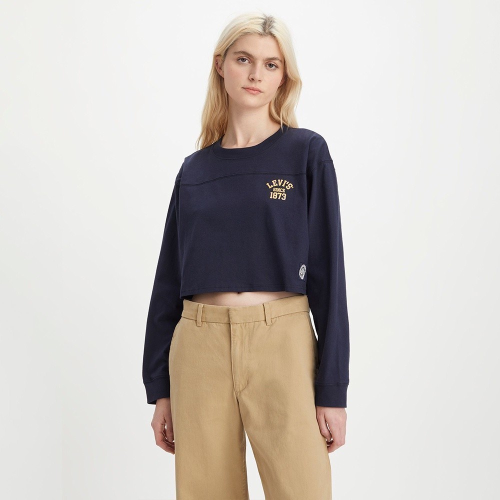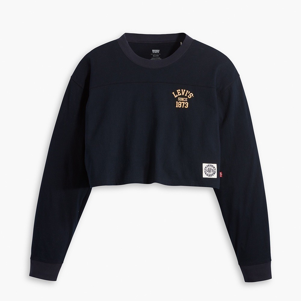 Levis 寬鬆短版橄欖球長Tee / 高密度膠印復古Logo 黑藍 女款 A4929-0001 熱賣單品