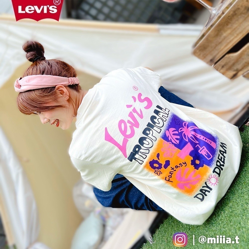 Levis 重磅長版短袖T恤 / 夏日炫彩印花 / 240GSM厚棉 米白 女款 A6416-0001 熱賣單品