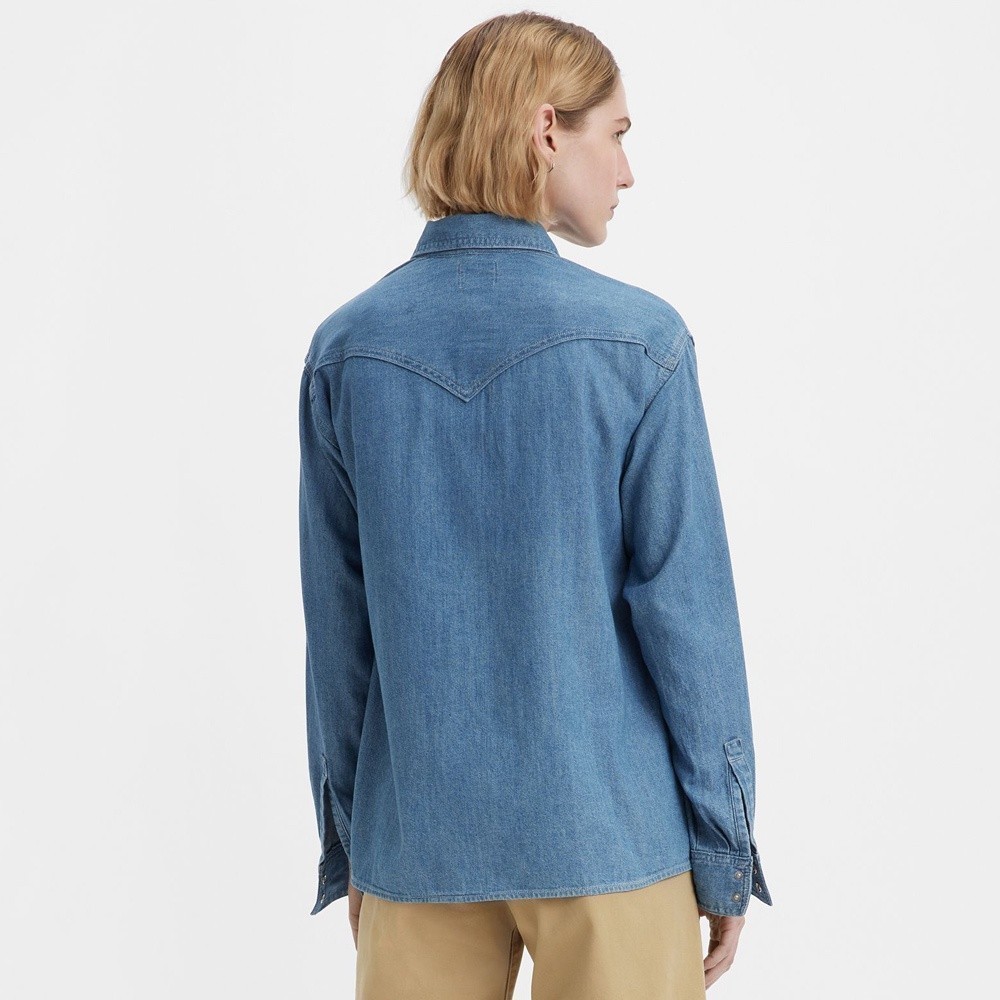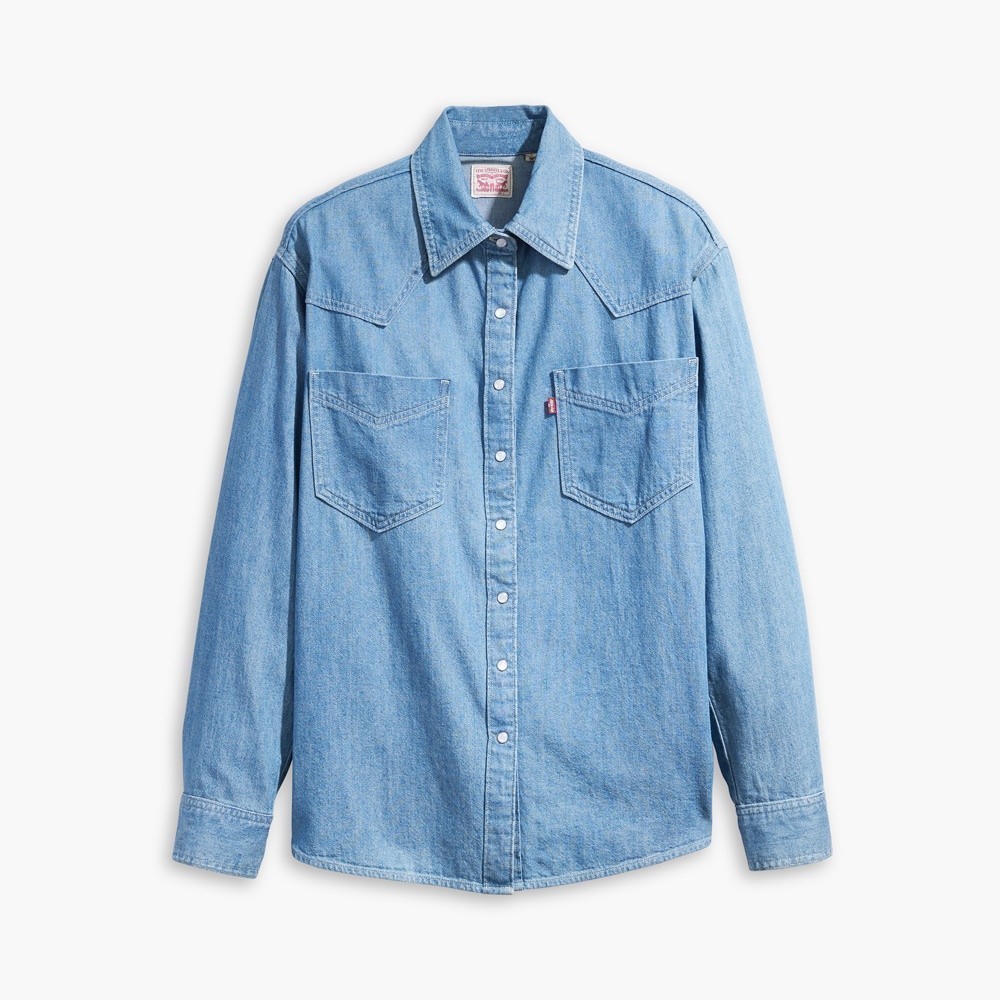Levis 寬鬆微落肩版牛仔襯衫外套 / 精工輕藍染石洗 / 寒麻纖維 女款 A5974-0008 熱賣單品
