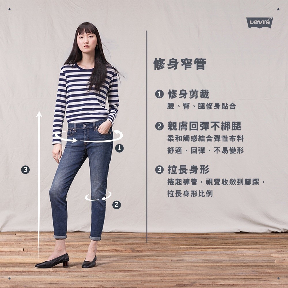 Levis 女款 中腰修身窄管牛仔長褲/機能保暖內刷毛/破壞縫補/彈性布料/及踝款 熱賣單品 19887-0122