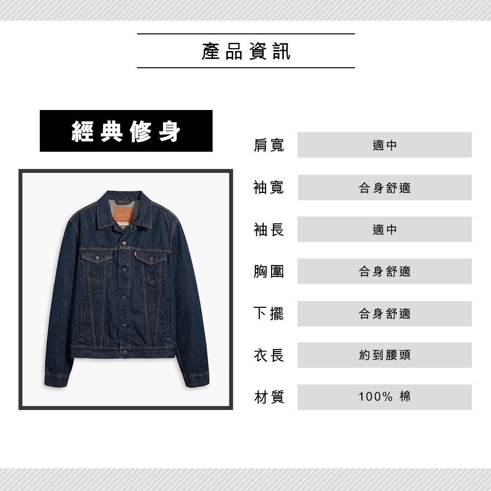 Levis 男女同款 牛仔外套 / Type 3 經典修身版型 / 黑藍基本款 熱賣單品 72334-0557